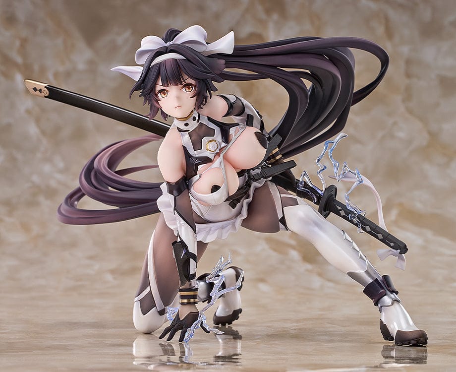 Sculpted with meticulous craftsmanship, this figure highlights dynamic motion, with Takao crouched in a poised combat stance, ready to strike with her lightning-imbued katana. The translucent energy effects and the detailed tiled base add a dramatic touch, making this a true collector’s centerpiece. Her long, flowing twin-tails add a sense of movement, enhancing the intensity and elegance of the figure.